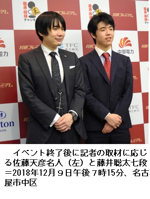 記者会見で佐藤名人は「(群雄割拠の将棋界で)タイトルに挑戦できそうな人は多いが、藤井七段は上位にいる。タイトルに手が届く勢いがあり、10代のうちに獲得する高い可能性がある」と指摘。藤井七段は「トップ棋士との対局で感じた課題や弱さを克服できれば、その先にタイトルが見えてくる」と話した。