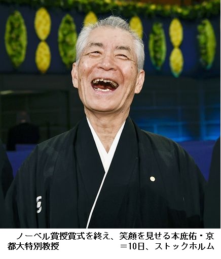 米テキサス大のジェームズ・アリソン教授(70)との共同受賞。日本人の受賞は16年の大隅良典・東京工業大栄誉教授(73)以来で26人目。