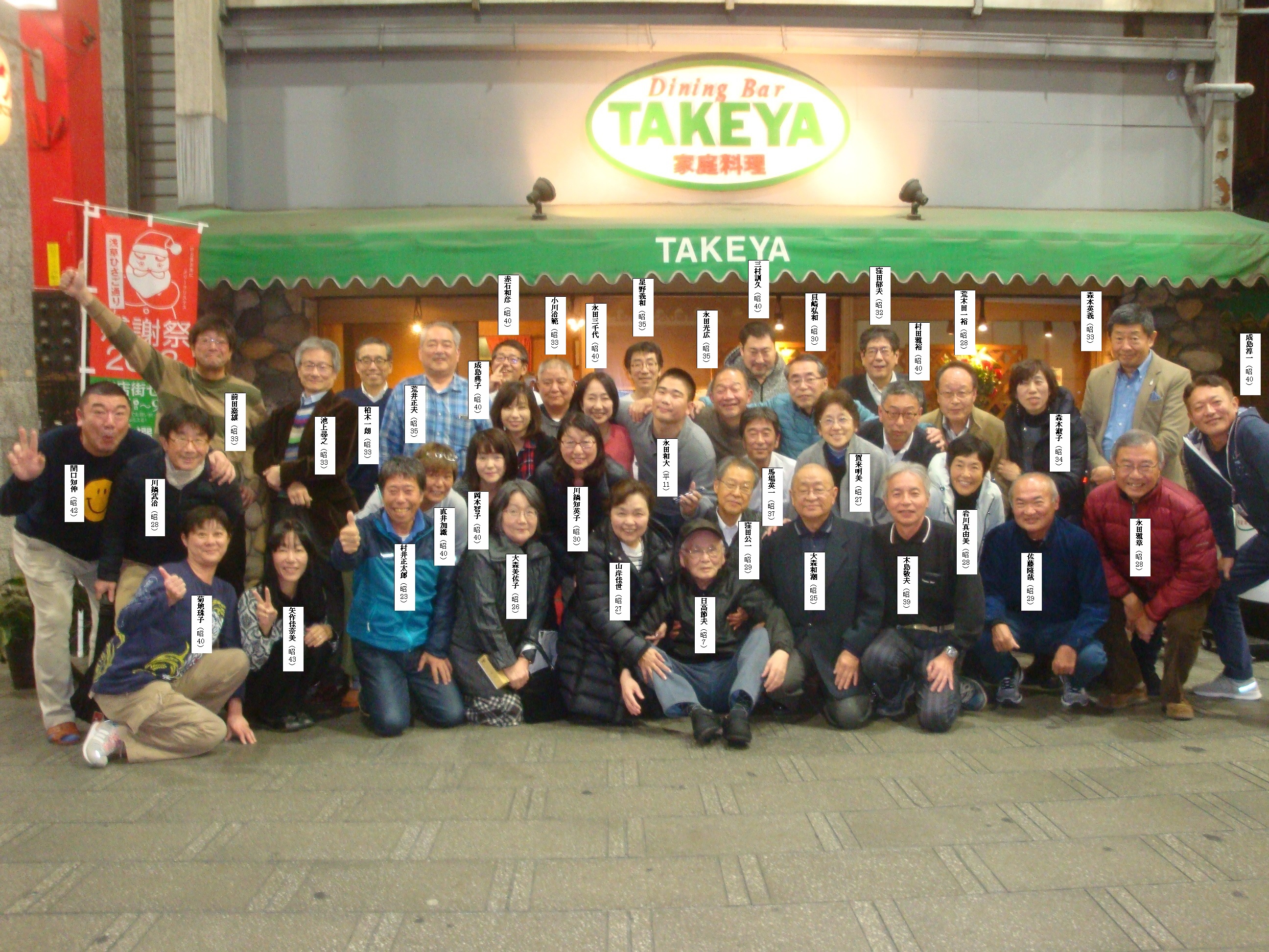 先ずは12月9日の全員写真に参加者の名前を入れてみました。( )内は生まれ年を記入しましたが、早生まれの方で記入年が間違っている方がいらっしゃるかもしれません。今後の事もあるので、間違いがありましたら、連絡くだされば有難いです。