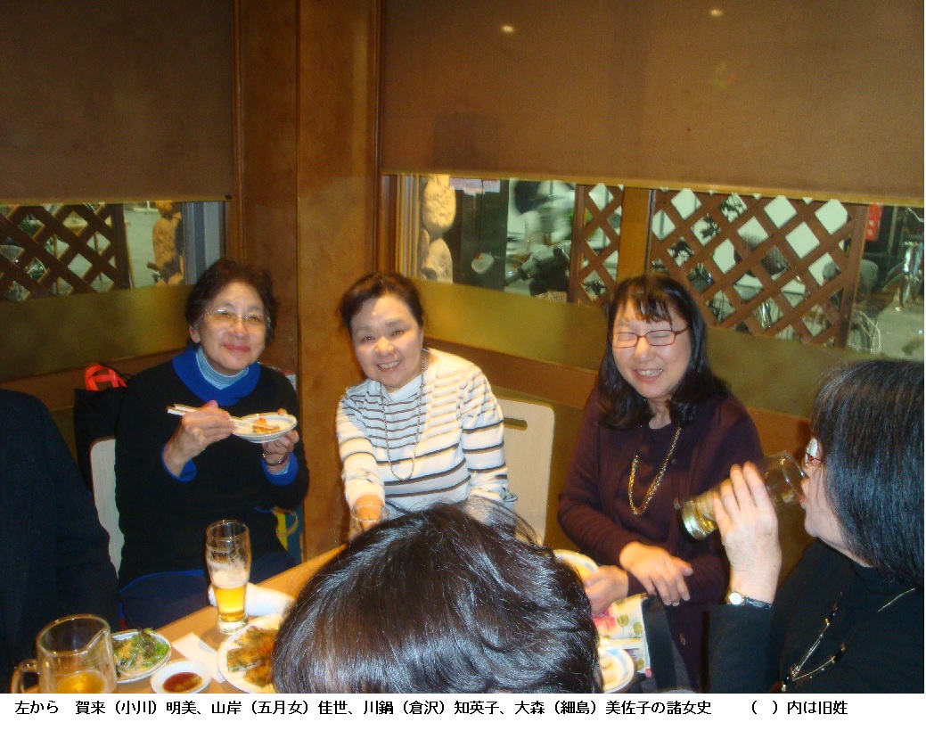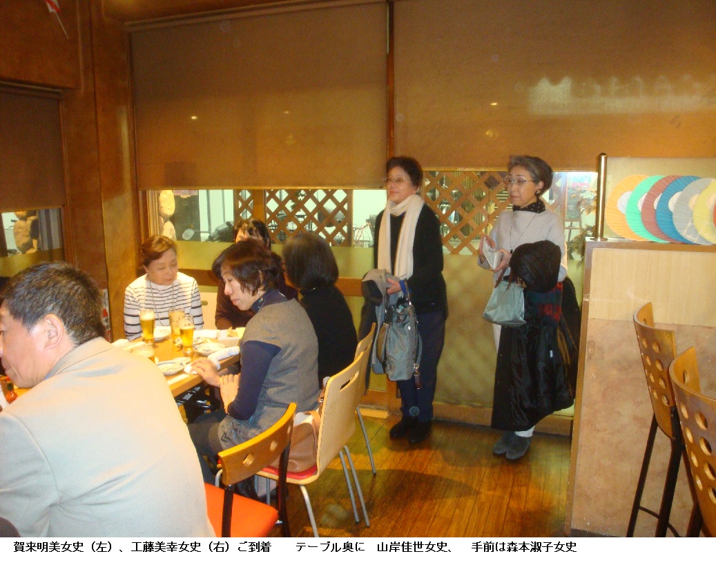 12月8日(土)に、例年のように塾友の忘年会がありました。今年は私のカメラで、K女史が会の様子を写していたようですが、後から急遽参加してくれたMayumi女史の写真が入っていませんでした。Maumi女史より10年ほども後輩のK女史ですから、気づかずにいたのも無理からぬことです。