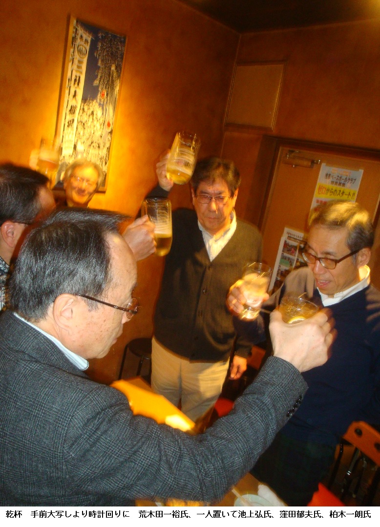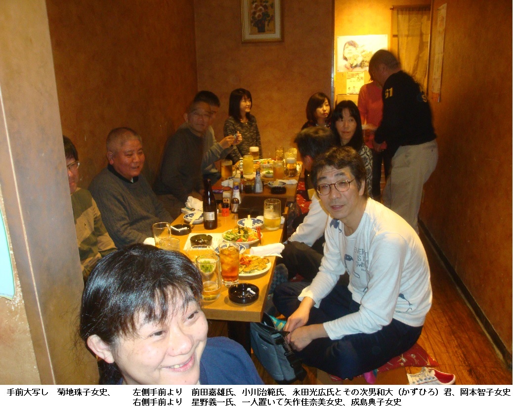 どうやら忘年会の写真が整理できたようです。例年ですと、手作りのアルバムを作成して、皆さんに送っていたのですが、寄る年波で手足も衰え、その上トナーなどの費用も馬鹿にならないので、本年より数枚ずつブログでお見せすることにします。