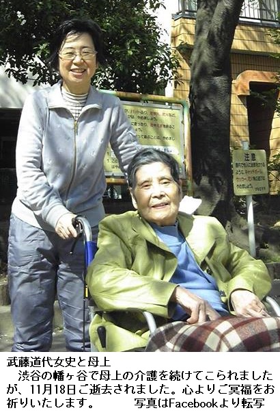 Mayumi女史の母上(門司高女28回生)は私と同郷で私の姉(門司高女34回生)の先輩でもあります。昨年97歳の高齢で亡くなられたとのことです。