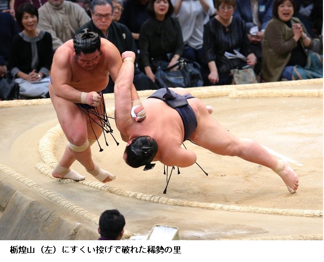 稀勢の里、屈辱の初日から4連敗に無言 行司軍配差し違えで栃煌山に黒星 ―― 初日から3連敗の東横綱・稀勢の里(32)=田子ノ浦=が、行司軍配差し違えで東前頭2枚目・栃煌山(31)=春日野=にすくい投げで敗れて、4連敗となった。稀勢の里は立ち合いから攻め込んだが、土俵際で劣勢の栃煌山がすくい投げ。軍配は一度、稀勢の里に上がったが、物言いがつき協議の結果、栃煌山の足が土俵を割るより、稀勢の里の左肩が早く落ちており、行司差し違えで悪夢の4連敗となった。
