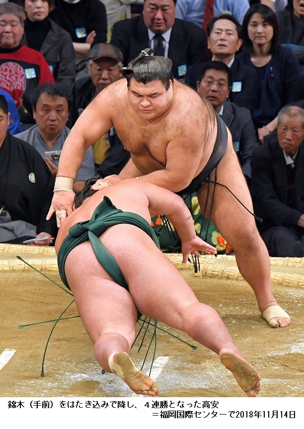 大関高安(28=田子ノ浦)は初顔合わせの前頭3枚目錦木(28=伊勢ノ海)をはたき込んで4連勝を飾った。