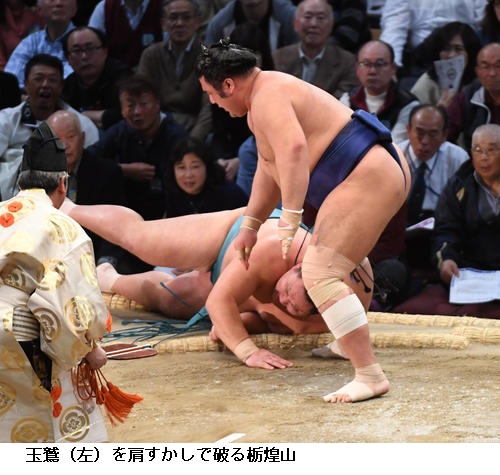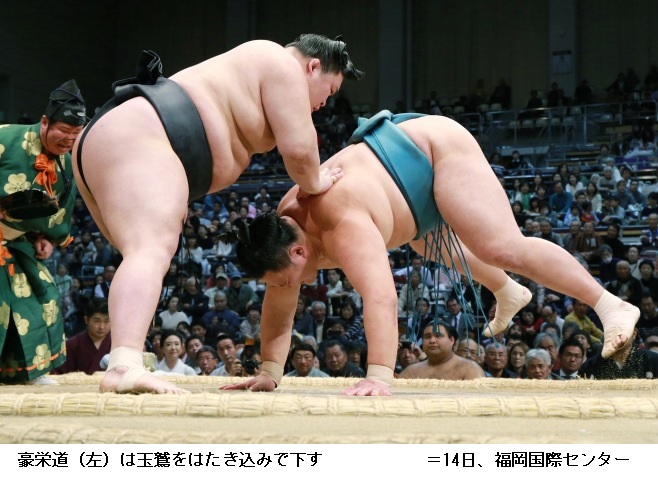 大関豪栄道(32=境川)は前頭2枚目玉鷲(33=片男波)をはたき込んで2勝2敗とした。