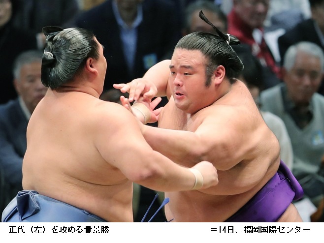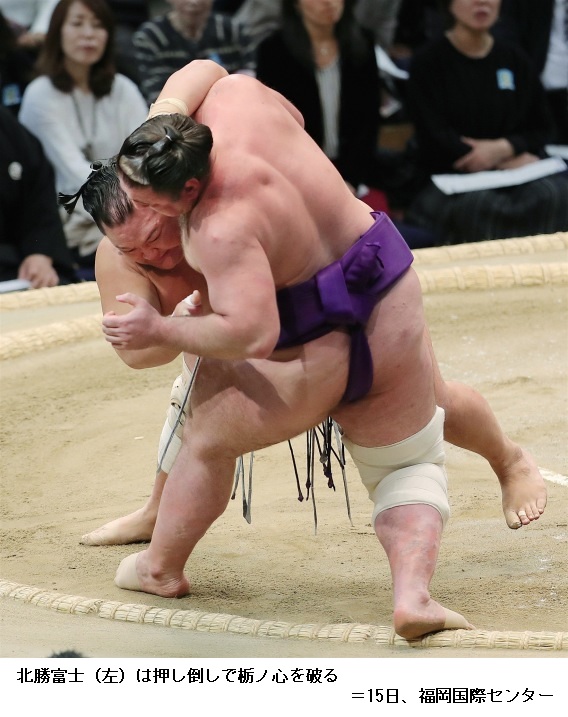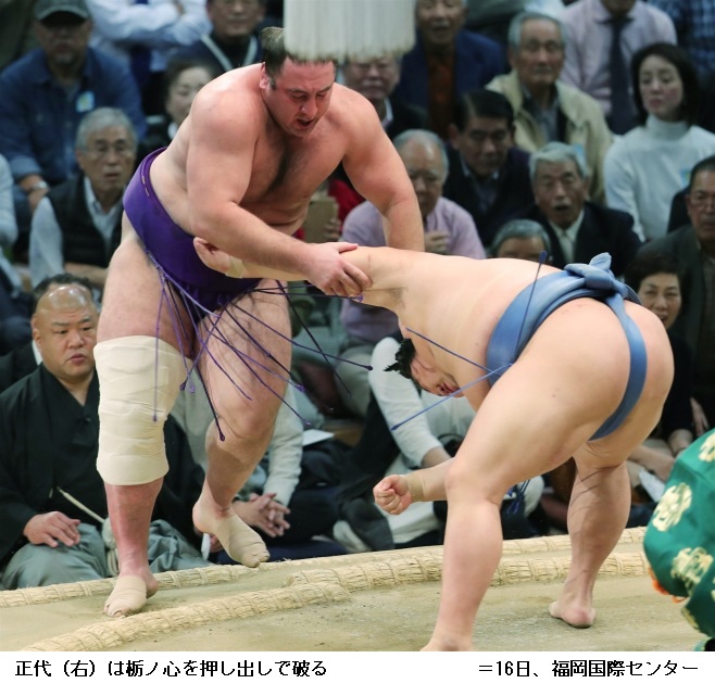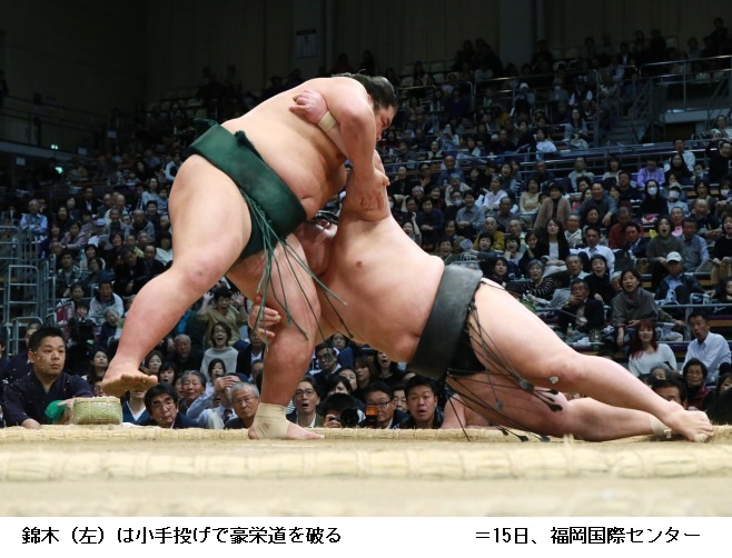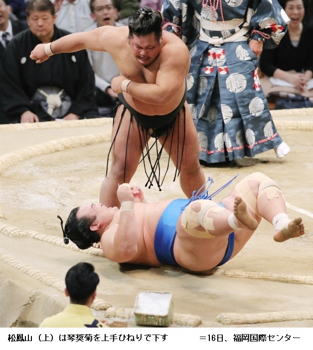 松鳳山は、琴奨菊との福岡出身対決を制した。
