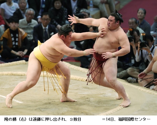 人気力士の前頭12枚目遠藤(27=追手風)は同13枚目隆の勝(23=千賀ノ浦)を押し出し2勝2敗とした。
