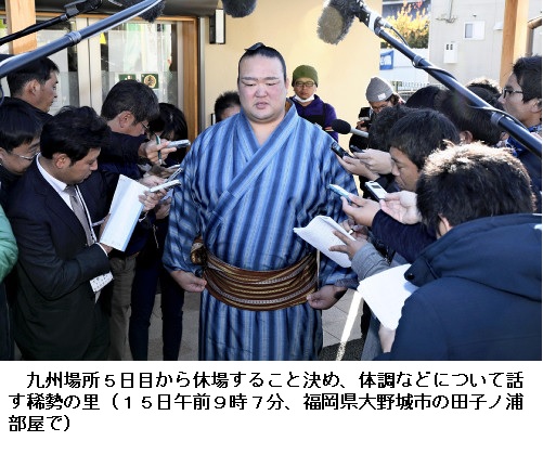 横綱の初日からの4連敗(不戦敗除く)は史上初の不名誉な記録で、途中休場も避けられない苦境に立たされた。休場を選択すれば、8場所連続休場明けの秋場所で10勝を挙げて沈静化していた進退問題が再燃することは確実だ。 〔2018年11月14日 18時5分 スポーツ報知〕