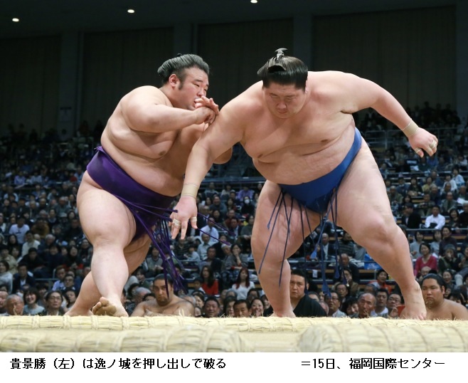 小結貴景勝は関脇逸ノ城を押し出し、5連勝とした。