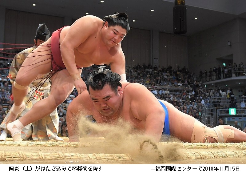 十両は照強と炎鵬が1敗でトップ。 〔2018/11/18 19:07 共同〕