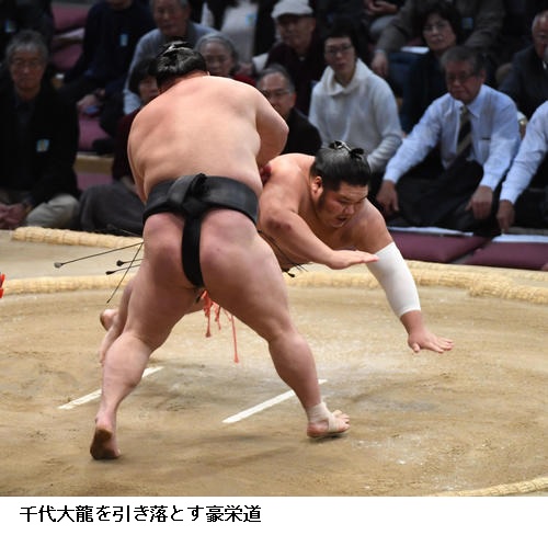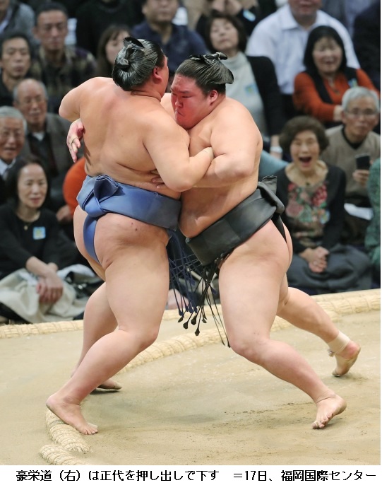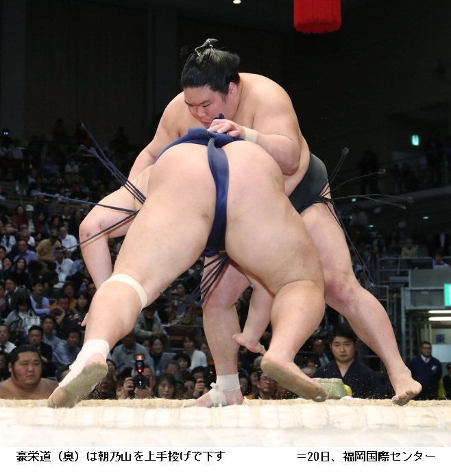 豪栄道は朝乃山を上手投げで仕留めて7勝目。