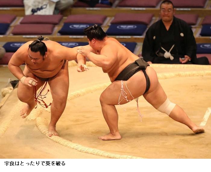 相手は埼玉栄高校出身のホープで、初場所で序の口デビュー。順調に出世し、今場所も宇良と対戦するまで5戦負けなし。宇良も、取組前はいつになく慎重だった。