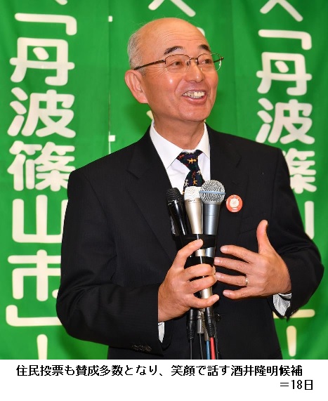 住民投票の実施を受け、同市の酒井市長(当時)は、「変更の方針を決めた責任があり、市民に信を問う」として10月16日付で退職。住民投票と合わせた出直し市長選への出馬を表明していた。 ((丹波新聞 2018年11月18日)