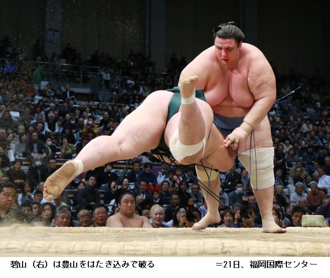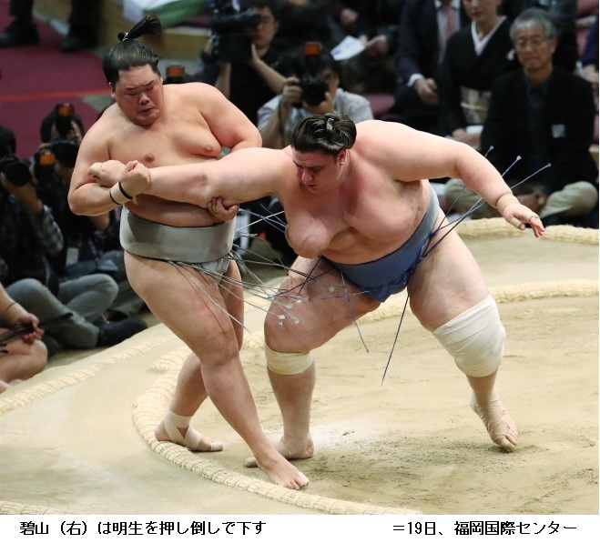 貴景勝を1差で追う2敗は高安、平幕の大栄翔、碧山の3人になった。