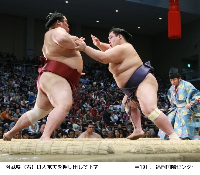 序盤戦で4勝1敗と好調だった大奄美に対し「右の肩を狙うぐらいに頭をつけて、まわしをとおくしようと思った。それがうまくいった」。最後は「肩透かしから体を開いていった」。イメージ通りの攻めから勝利につなげた。