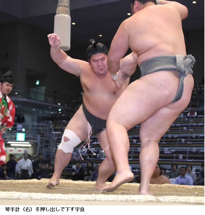 宇良 無傷の6連勝 埼玉栄高出身のホープ相手に完勝「ほっとしました」 ――東三段目33枚目の宇良(26=木瀬部屋)が琴手計(ことてばかり)を押し出して、無傷の6連勝とした。