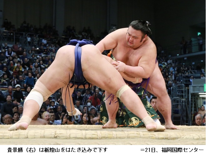 貴景勝10勝目で単独首位守る、1差で高安ら 九州場所11日目 ―― 小結貴景勝が平幕栃煌山を冷静にはたき込み、10勝1敗で単独トップを守った。