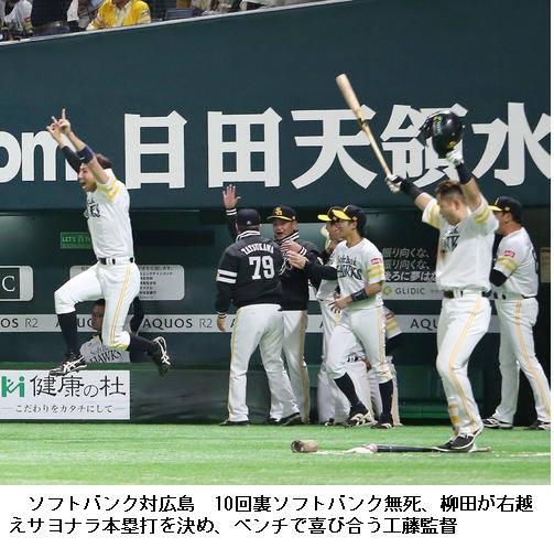 ソフトバンクが広島に4-1で快勝して2連勝を飾り、対戦成績を2勝1敗1分けとした。