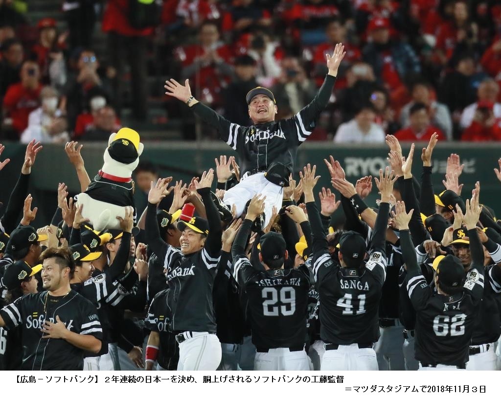 ソフトバンク・工藤監督 シーズン終盤からほぼ休むことなく、満身創痍(そうい)の中、突っ走ってくれて日本一になれたことを本当に幸せに思う。(リーグ)2位と悔しい思いをして、みんなで日本一を目指して頑張ろうと強い思いがあったからここまで来られた。僕は日本一幸せな人間です。