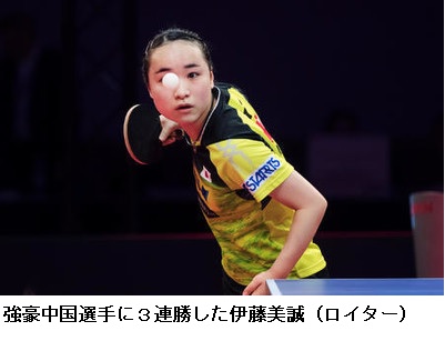 国際卓球連盟(ITTF)はホームページのトップに「驚異のパフォーマンス。伊藤美誠がまばたきする間に朱雨玲を破った」と報じた。