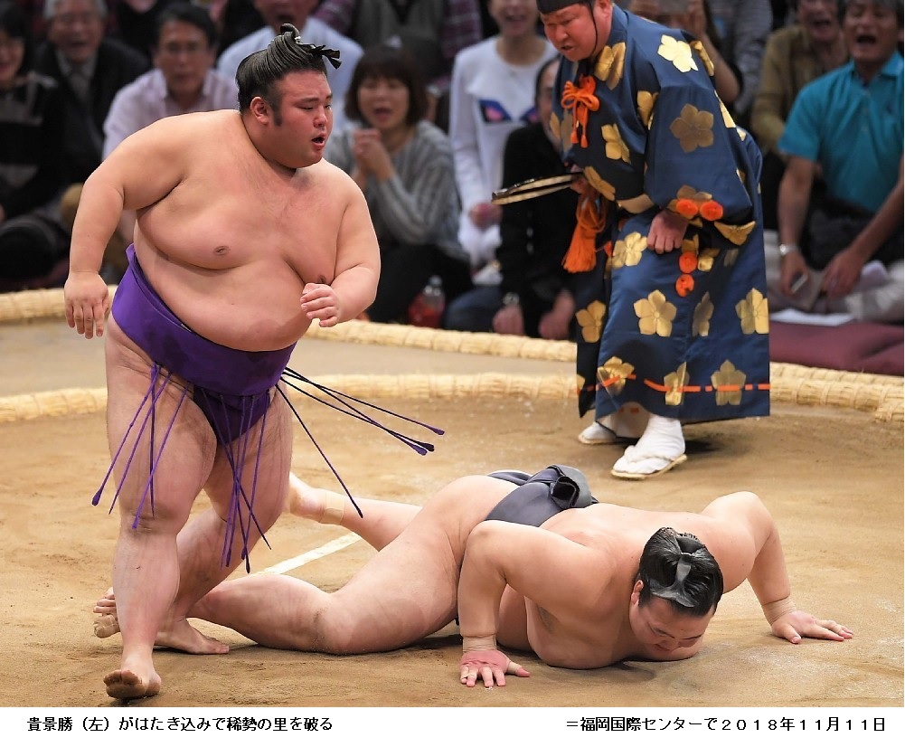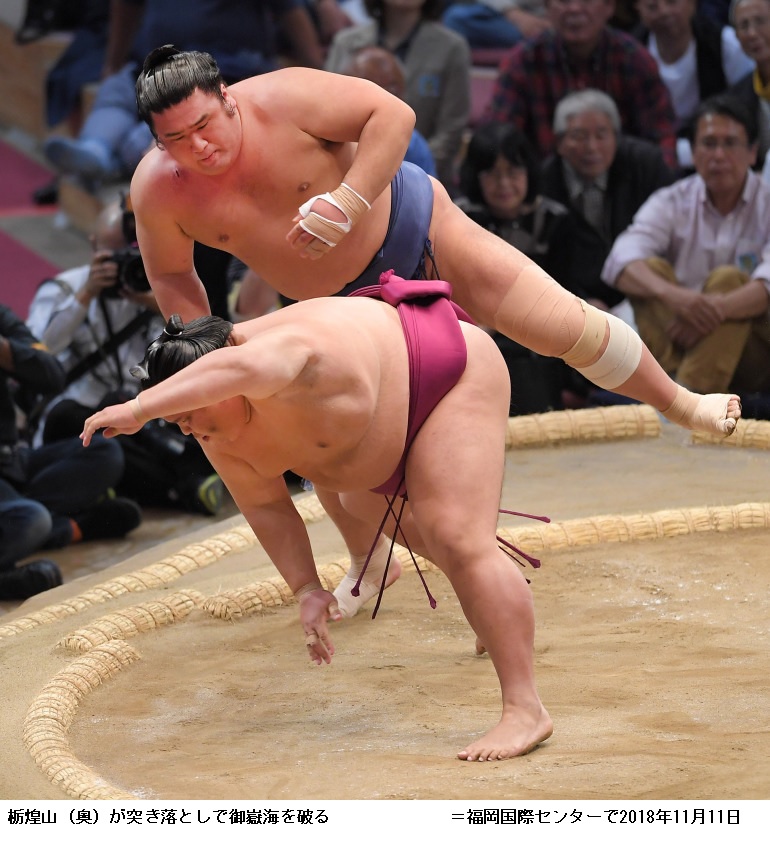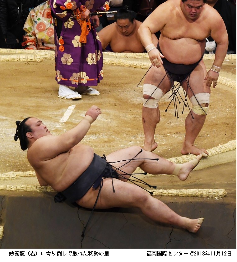 初のかど番で、右足親指のけがも抱えながら9勝した先場所と比べれば重圧は少ない。白鵬、鶴竜が休場しており、優勝の好機と言える場所で初日に痛い黒星を喫した。 (jiji.com 2018/11/11-19:22)