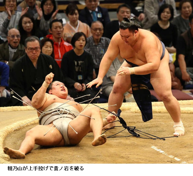 貴ノ岩転がした!朝乃山、白星発進も気を引き締める「内容もよくしたい」 ――平幕・朝乃山(24=高砂部屋)が貴ノ岩を下し幸先のいいスタートを切った。実力者を右四つがっぷりからの上手投げで転がし、地力アップを印象付けた。