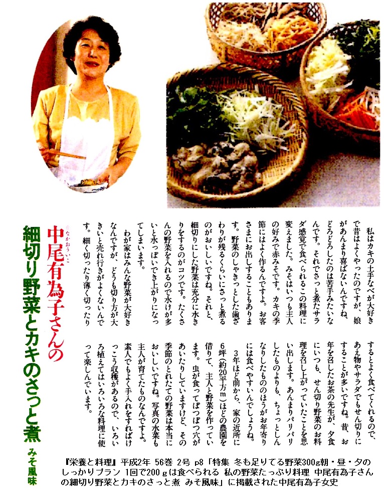 また、料理のほうもかなりの腕前で、『栄養と料理』にもたびたび取り上げられているほどです。