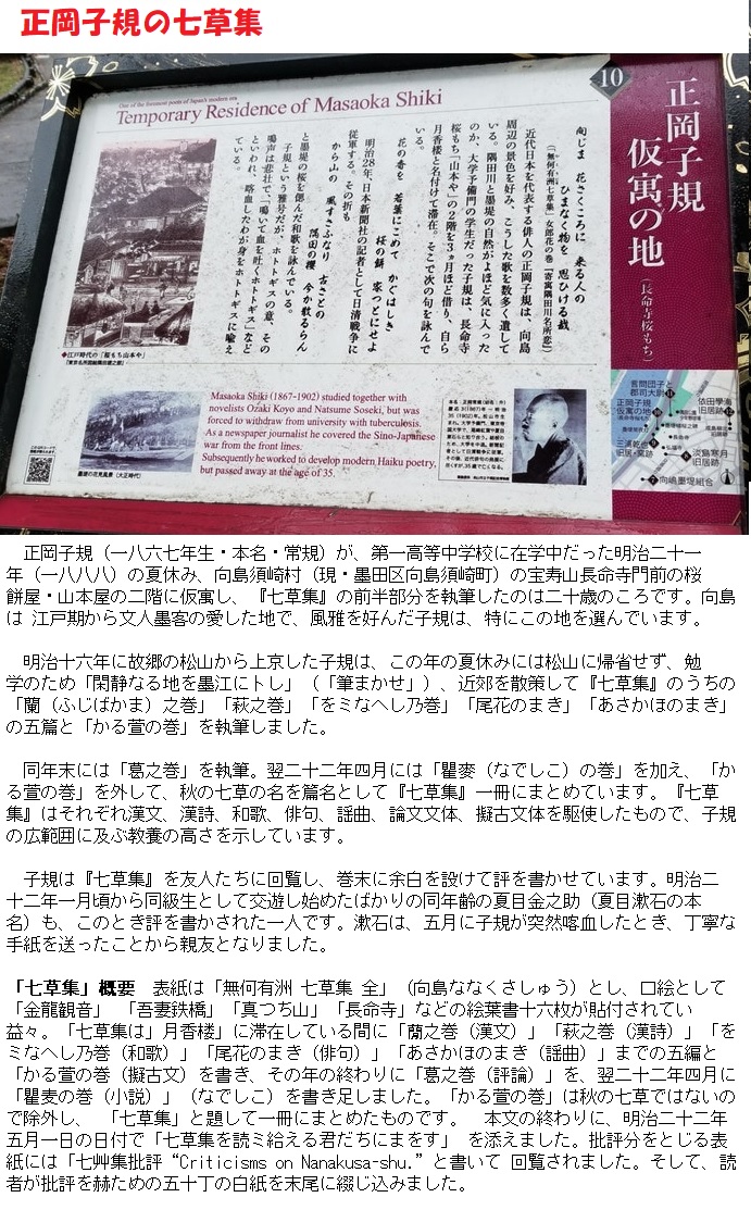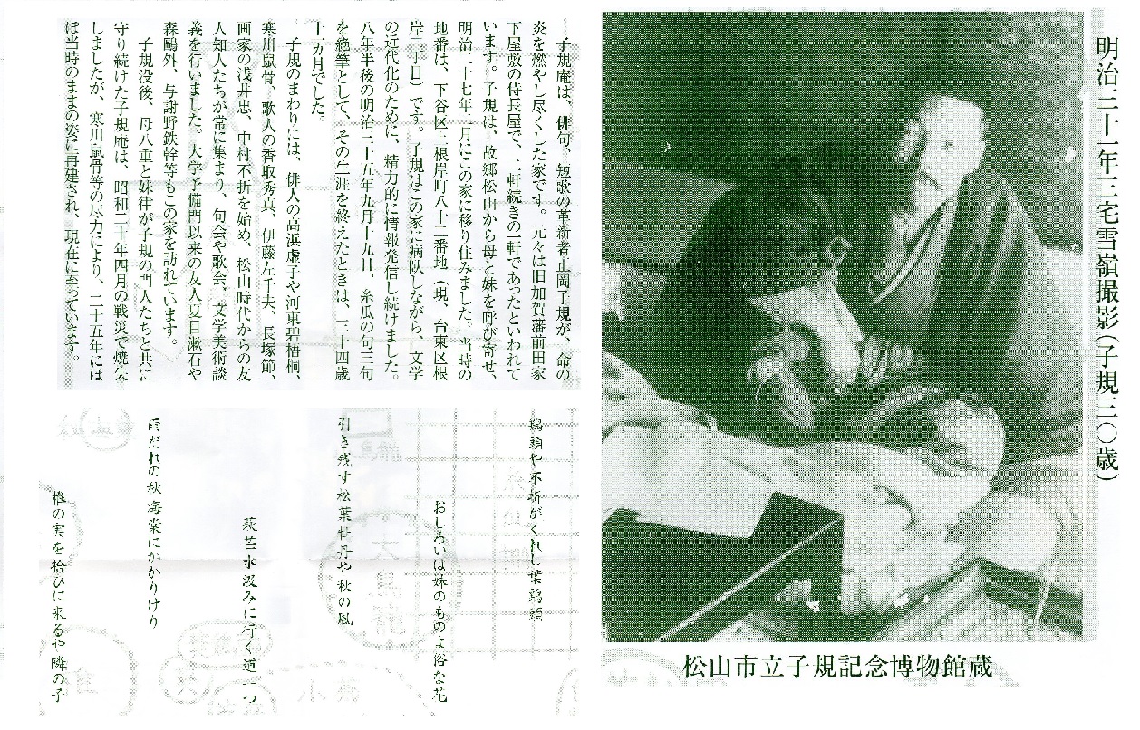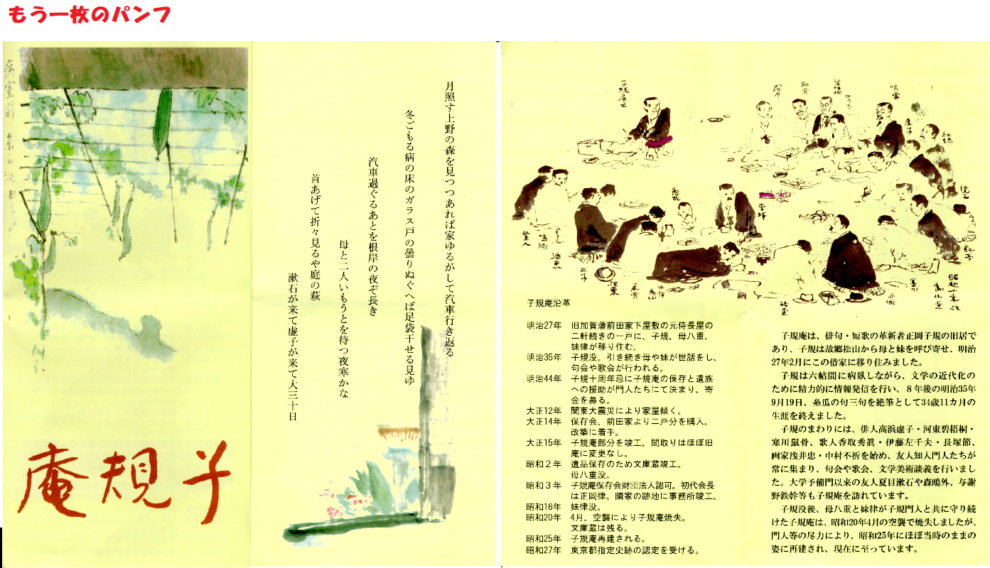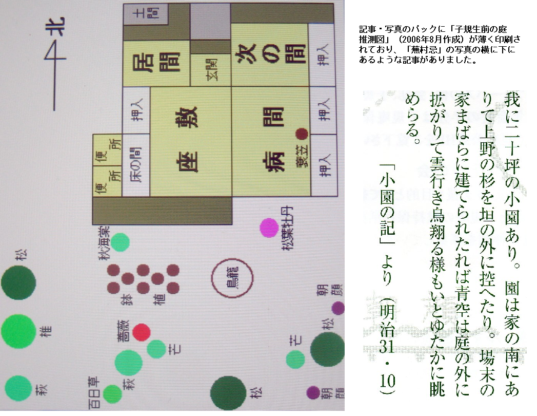 ブログの写真はthumbnail表示になっているので、元の大きさにして印刷しておきました。なお、子規庵で貰ったパンフレットから引用したものは、拡大しないでそのままにして置きました。