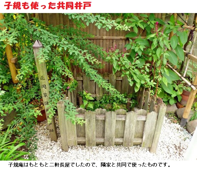 土蔵からすぐのところに井戸があります。当時正岡家が使用していたそうですが、位置から考え、共同井戸だったと思われます。少なくとも二軒長屋のもう一軒とは共用のようです。