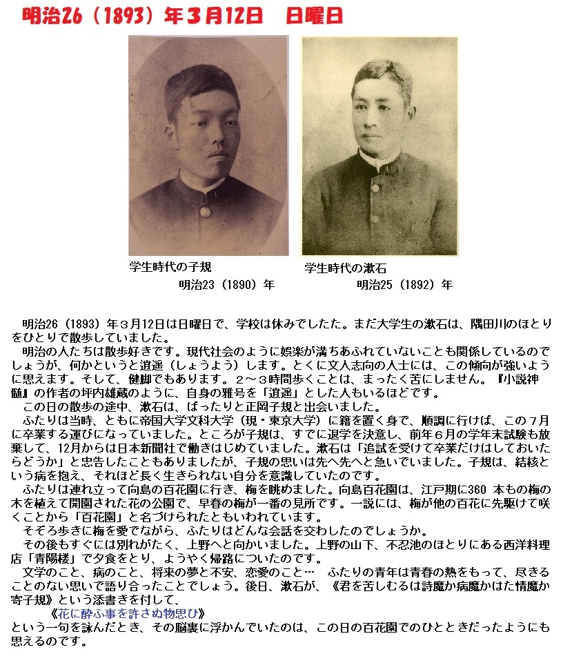 漱石は明治時代を代表する俳人、正岡子規と親友でした。