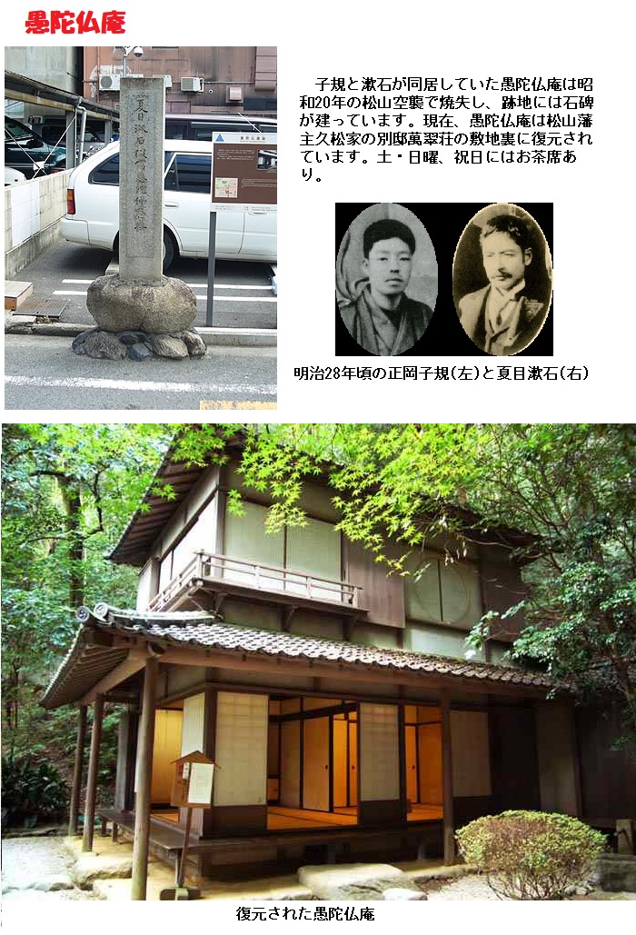 漱石の俳号は、愚陀佛(ぐだぶつあん)と言います。漱石が愛媛県松山市に赴任していた時の下宿先、『愚陀仏庵』がその由来です。彼はここで俳句の世界に入っています。