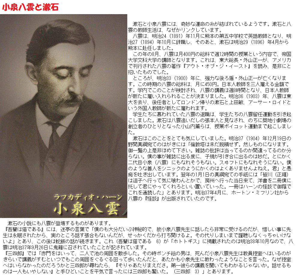 夏目漱石が来たことにより小泉八雲(ラフカディオ・ハーン)は解雇されています。