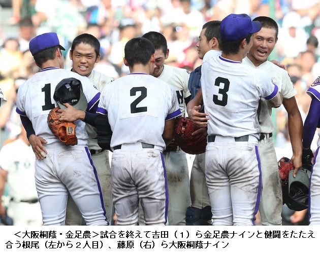 試合後、ネットでは「大阪桐蔭も金足農業もお疲れ様でした!」「大阪桐蔭おめでとう!本当に強かった」「主将の中川くんの涙に泣けた。最強軍団率いる重圧ってすごかったんだろうなあ」「藤原くん、根尾くん、柿木くんら本当に超高校級の実力でした」と大阪桐蔭の偉業を称える声や「吉田くん、感動をありがとう」「秋田出身者として嬉しい夏でした。秋田の誇りです」「最後まで諦めない姿勢素晴らしかった」などと金足農を称える声も集まった。 (8月21日(火)17時18分 スポーツニッポン)