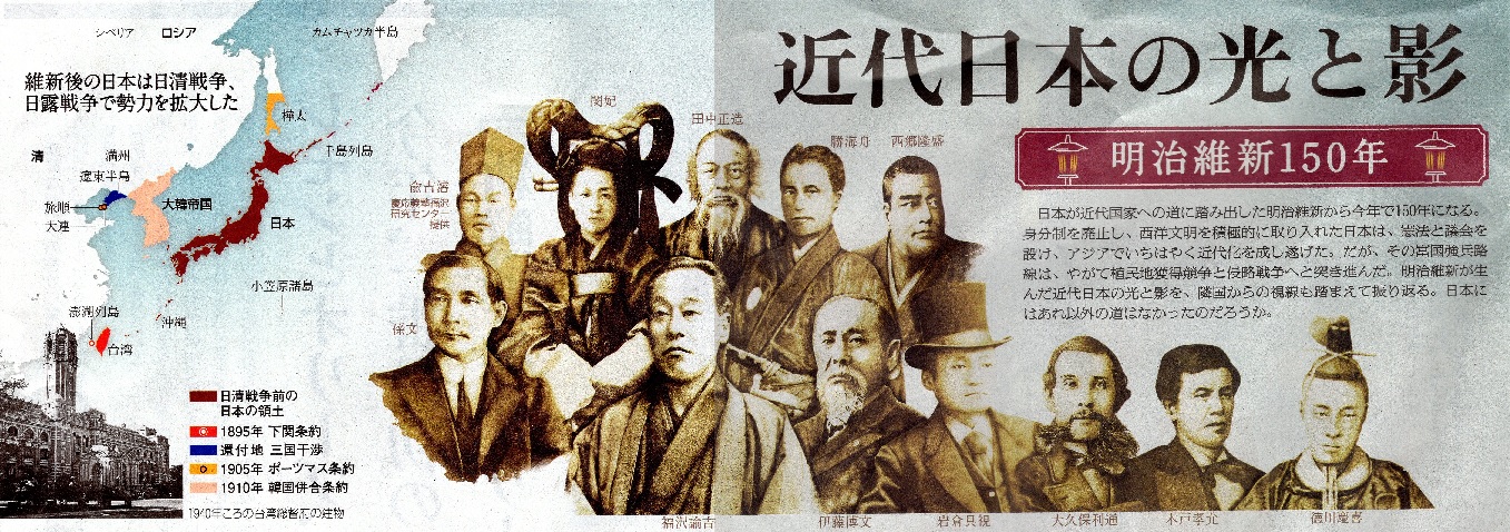 明治維新によりアジア初の近代国家を造ったことは、国民の大きな誇りになってよい経験だろう。しかし、単純にそれをたたえるには、その後の植民地支配や侵略戦争の過去が重い。
