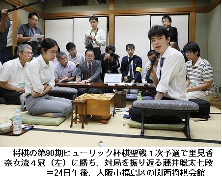 青野九段は、名人挑戦権を争うA級順位戦に11期在籍した経験を持ち、現役で2番目に年長のベテラン。中盤で戦機をつかんだ藤井七段が押し切った。「ここからが正念場。気を引き締めて次の対局にも臨みたい」と話した。