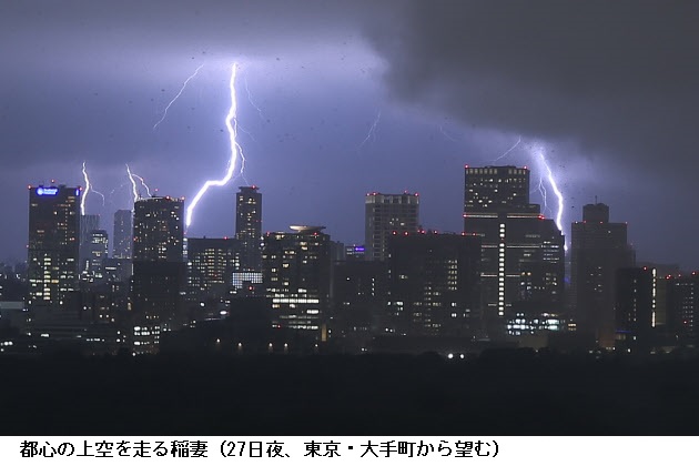 都心で雷や大雨 停電で京王線など一時運転見合わせ ―― 関東地方を中心に27日午後、大気の状態が不安定になり、局地的に雷や突風を伴った非常に激しい雨となった。落雷によって東京都内の約7700軒で停電が一時発生。京王井の頭線や京王線の全線で約1時間半にわたって運転を見合わせるなど、帰宅時間帯の足に影響が出た。
