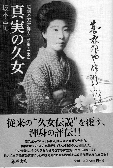 「見よ、冬すでに去り/雨もやみてもろもろの花地にあらはれ/山鳩の声もきこゆ」と、杉田久女が「花衣」創刊号に『旧約聖書』を引用して理想の境地を述べてから、八十年余がたった。天才俳人の久女が俳句を始めてほぼ百年。まだ男性の文芸といわれていた俳句に命を賭けた生涯と作品が、坂本宮尾の著書『真実の久女』(藤原書店)によって明らかになった。「ホトトギス」同人除名など、師の高濱虚子との確執から、風聞による伝説が一人歩きし、誤解されることも多かった俳人の真実の姿を著者は浮き彫りにした。二〇〇四年に俳人協会評論賞を得た評伝『杉田久女』に新資料を多く加え、大幅に手を入れた力作である。「周囲との軋轢に苦悩しながらも理想を追い、自身が信じる作句活動に打ち込んだ久女の一途な生き方は、次第に多くの人々の共感を呼ぶようになった」と著者はいい、「久女ルネサンスの到来」としている。