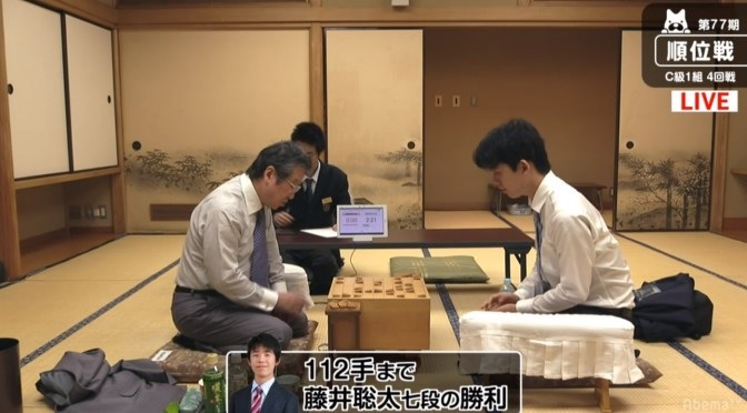 藤井七段が開幕4連勝 将棋名人戦・C級1組順位戦 ――高校生棋士、藤井聡太七段(16)が28日、東京都渋谷区の将棋会館で第77期将棋名人戦・C級1組順位戦(朝日新聞社、毎日新聞社主催)の4回戦に臨み、青野照市九段(65)に112手で勝って、開幕4連勝と星を伸ばした。一つ上のB級2組への昇級に向けて、前進した。