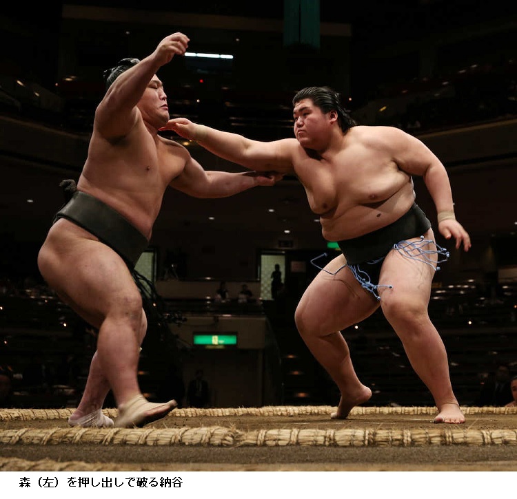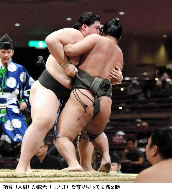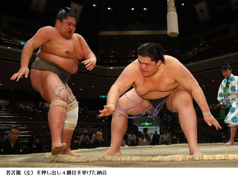 納谷、連勝伸ばすも不満「何もかもダメ」 ストレート給金決める ―― 大鵬の孫で東序二段11枚目の納谷(18=大鵬部屋)は、東序二段3枚目の若苫龍(21=二所ノ関部屋)を押し出しで破り、ストレート給金となった。序ノ口デビューの春場所からの連勝は11に伸びた。