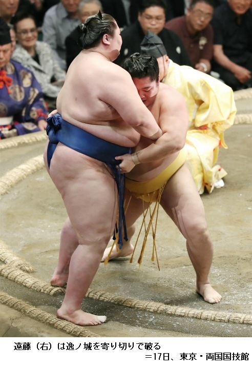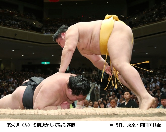 大関・豪栄道を破った新小結の遠藤は「攻められて、攻め返して最後は勝ちにつなげられてよかったです。しっかり集中して1日1番やるだけです」と話していました。