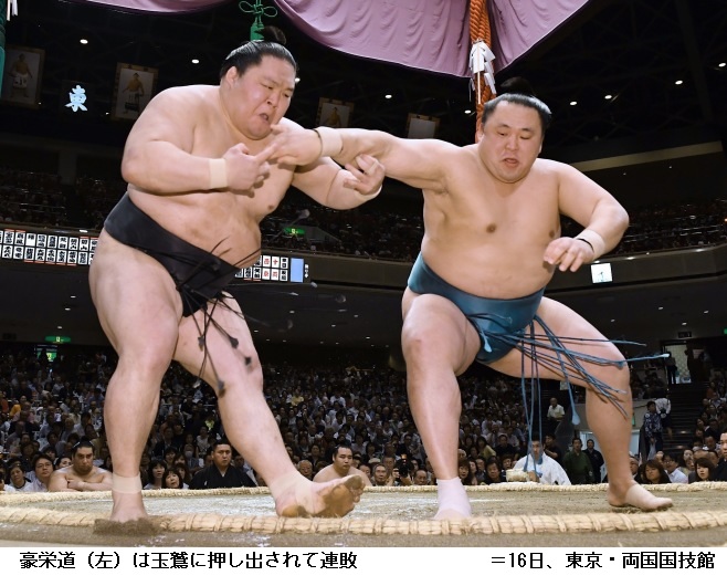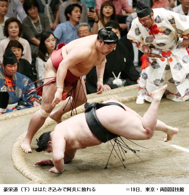敗れた豪栄道は「足が流れた。きょうは自滅しました」と言葉少なでした。