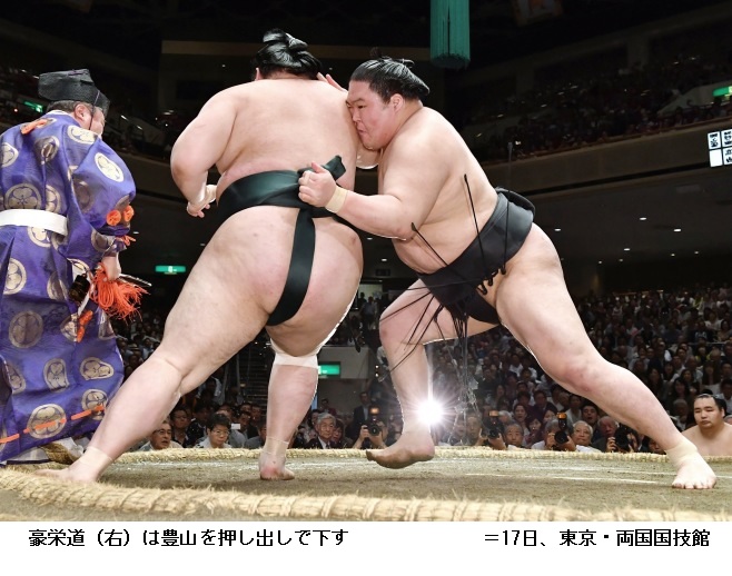 豪風に佐田の海は、豪風が浴びせ倒し。
