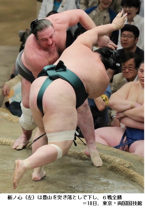 栃ノ心に大栄翔は、栃ノ心が寄り切りで勝ちました。大関昇進を目指す栃ノ心は、幕内でただ1人初日から9連勝です。