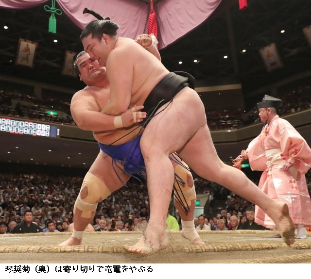 琴奨菊に千代大龍は、琴奨菊がすくい投げ。