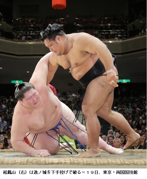 体重204キロの魁聖を寄り切った関脇・逸ノ城は「まわしはとれなかったが前に出た。相手は重いですけどそこまででした」と余裕の表情で話していました。