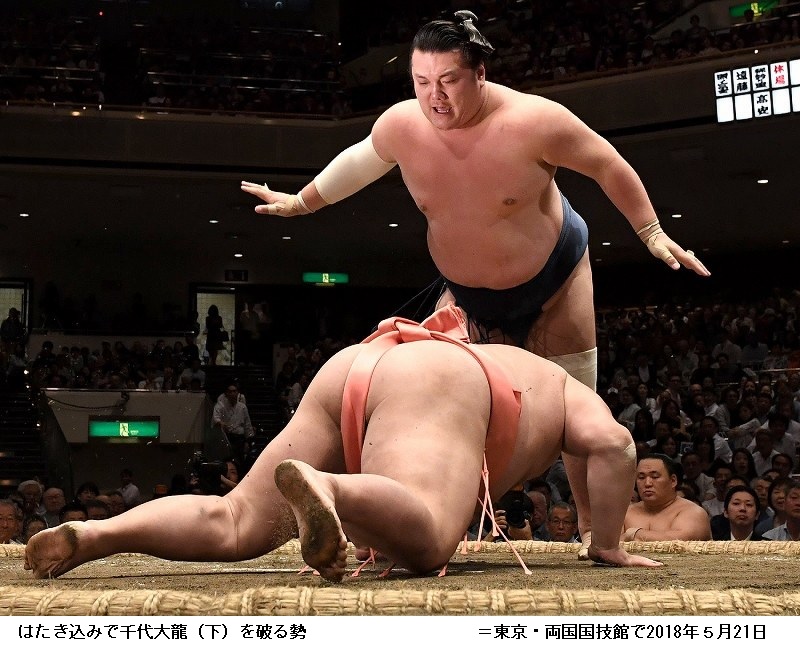 貴景勝に千代丸は、貴景勝が押し倒し。