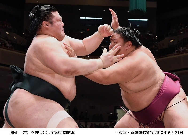 御嶽海に豊山は、御嶽海が押し出し。