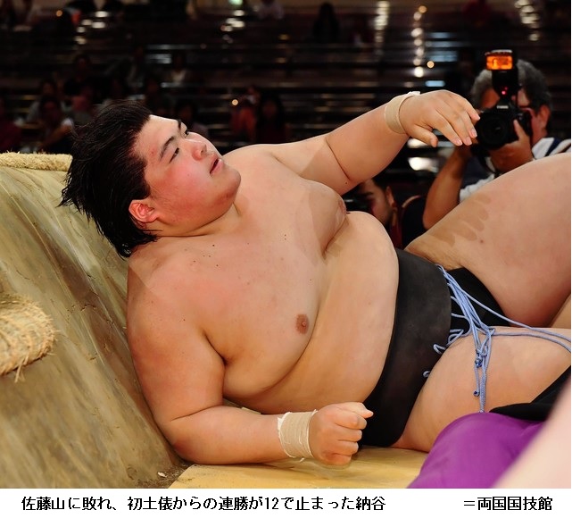 5勝1敗となった納谷は土俵下でしばらく上を見上げ、うつむきながら花道を引き揚げた。