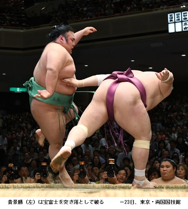 貴景勝に宝富士は、貴景勝が突き落とし。