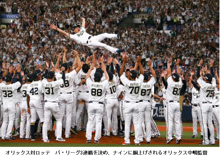 中嶋聡監督(54)は、今季も打順を固定しないフレキシブル打線で個々の調子を見極めた。オリックスでは、阪急からオリックスとなった1989年(平元)以降で3連覇は初めて。中嶋監督がレギュラーとして導いた95、96年の2連覇を超える。阪急時代でも西本幸雄監督時代の67~69年の3連覇、上田利治監督時代の75~78年の4連覇以来、球団3度目の3連覇だ。